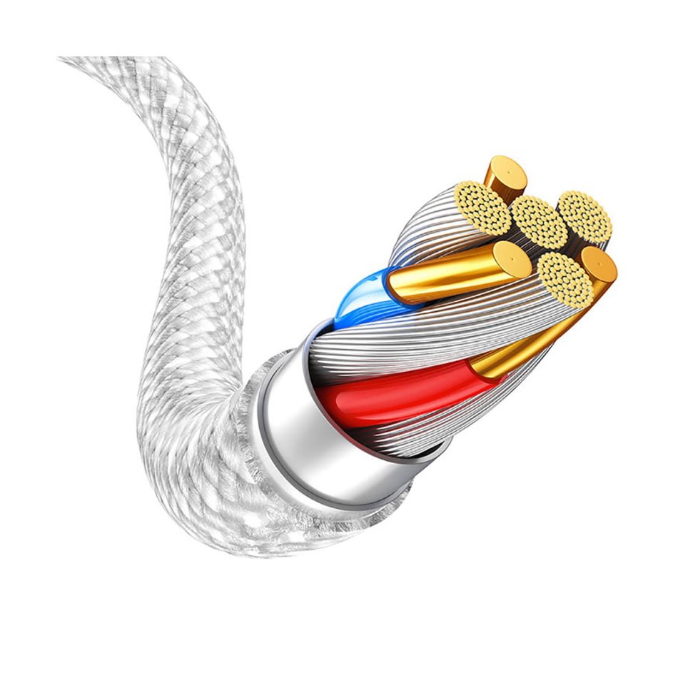 Trpežna pletena najlonska zunanjost ščiti kabel pred poškodbami in preprečuje zapletanje, kar zagotavlja izjemno dolgo življenjsko dobo in enostavno uporabo.